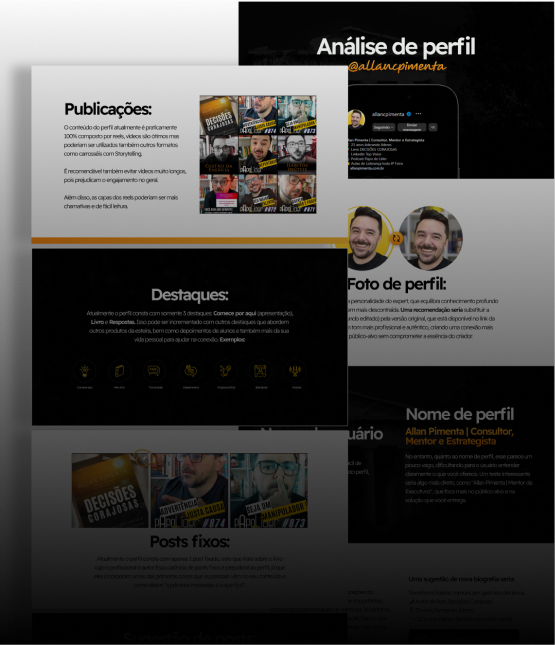 Um relatório completo em PDF documentando toda a análise e 1 call de consultoria para apresentação.
